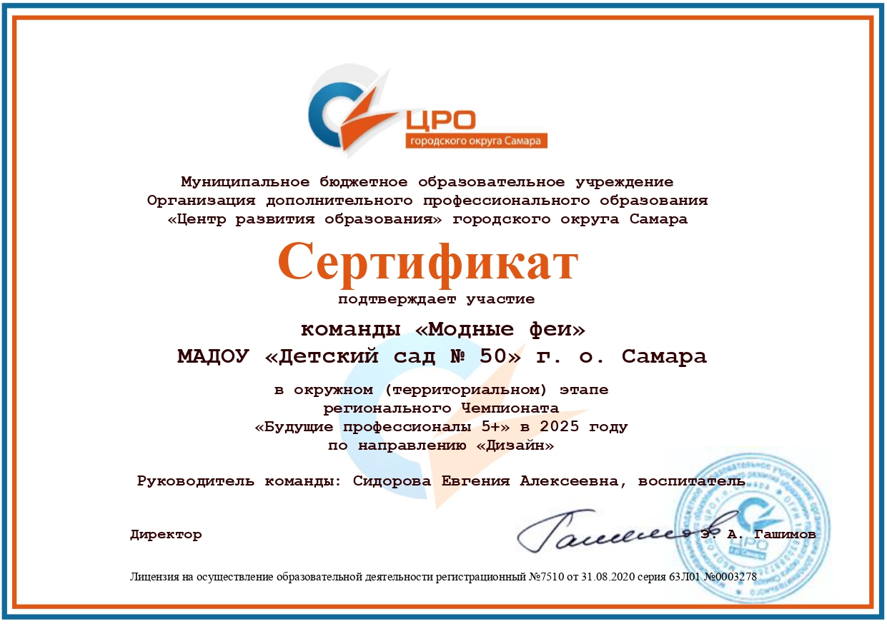 2020 г. – Повышение квалификации в ГАУ ДПО СО ИРО г. о. Самара,