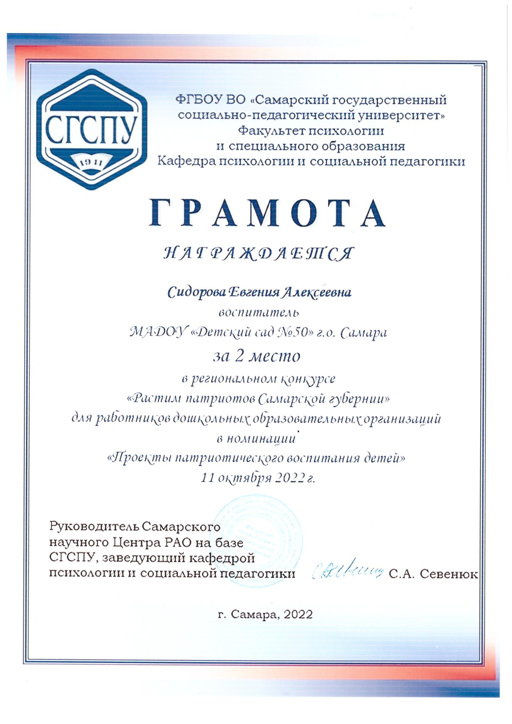 высшее: СГПУ г.Самара, 2006г.