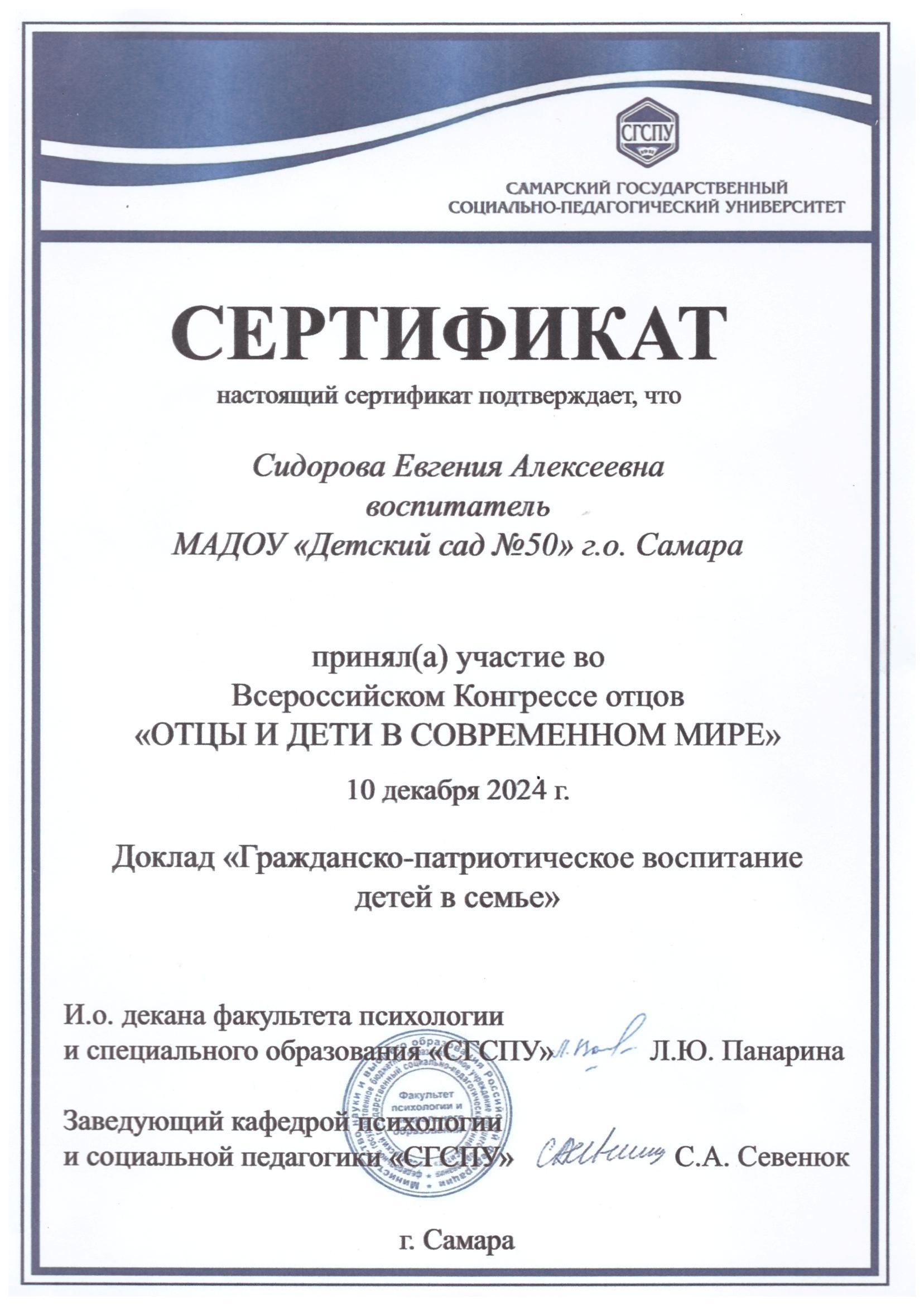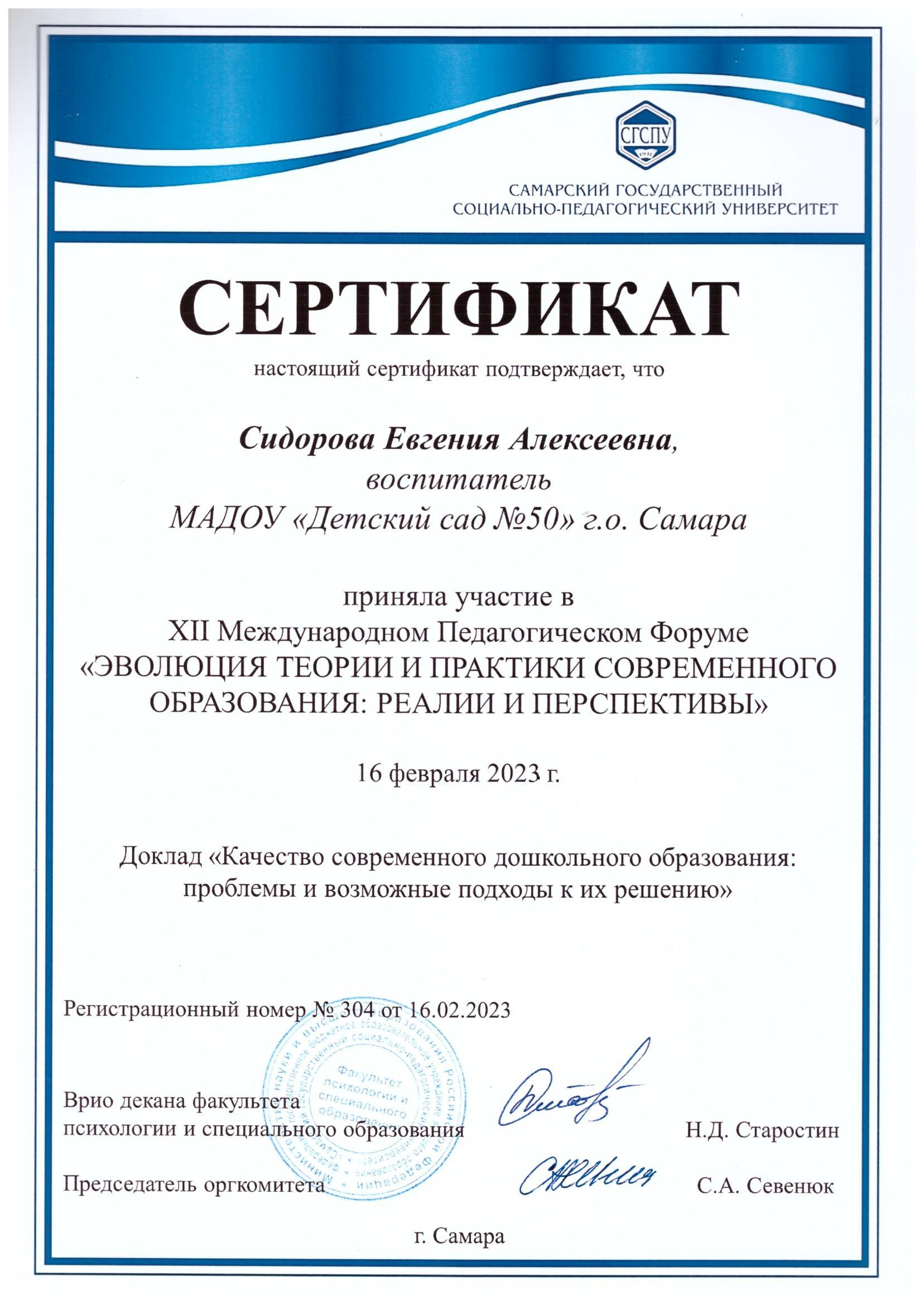 2023 г. – Повышение квалификации в СФ ГАОУ ВО МГПУ г. о. Самара, по теме: