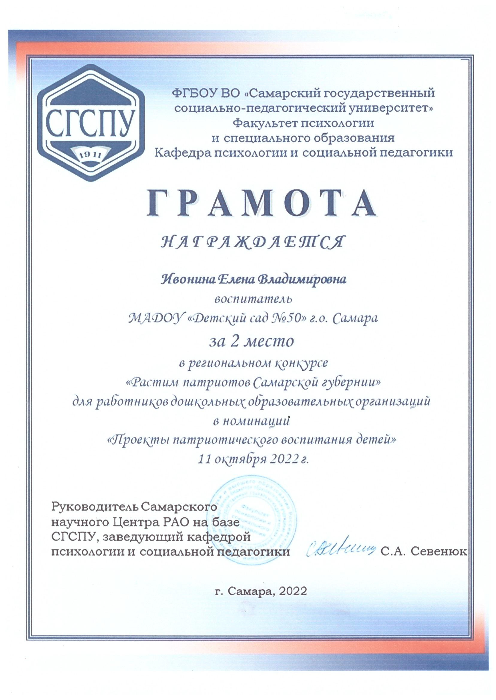 2023 г. – Повышение квалификации в ГАУ ДПО СО ИРО г. о. Самара, по теме: